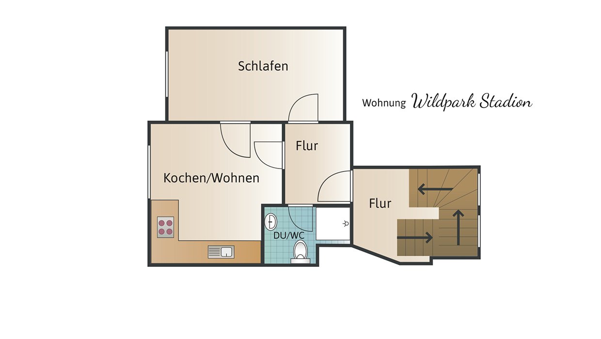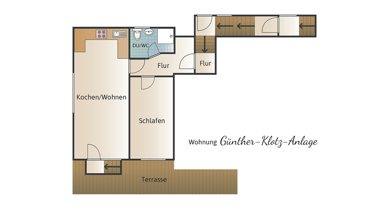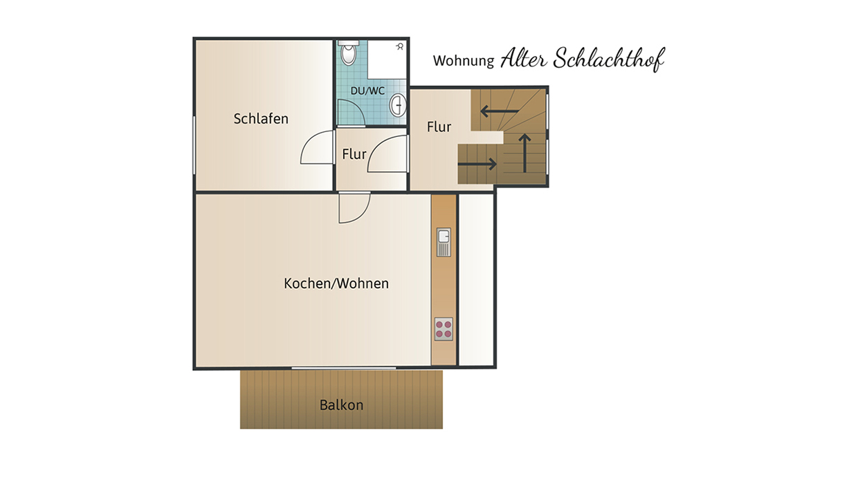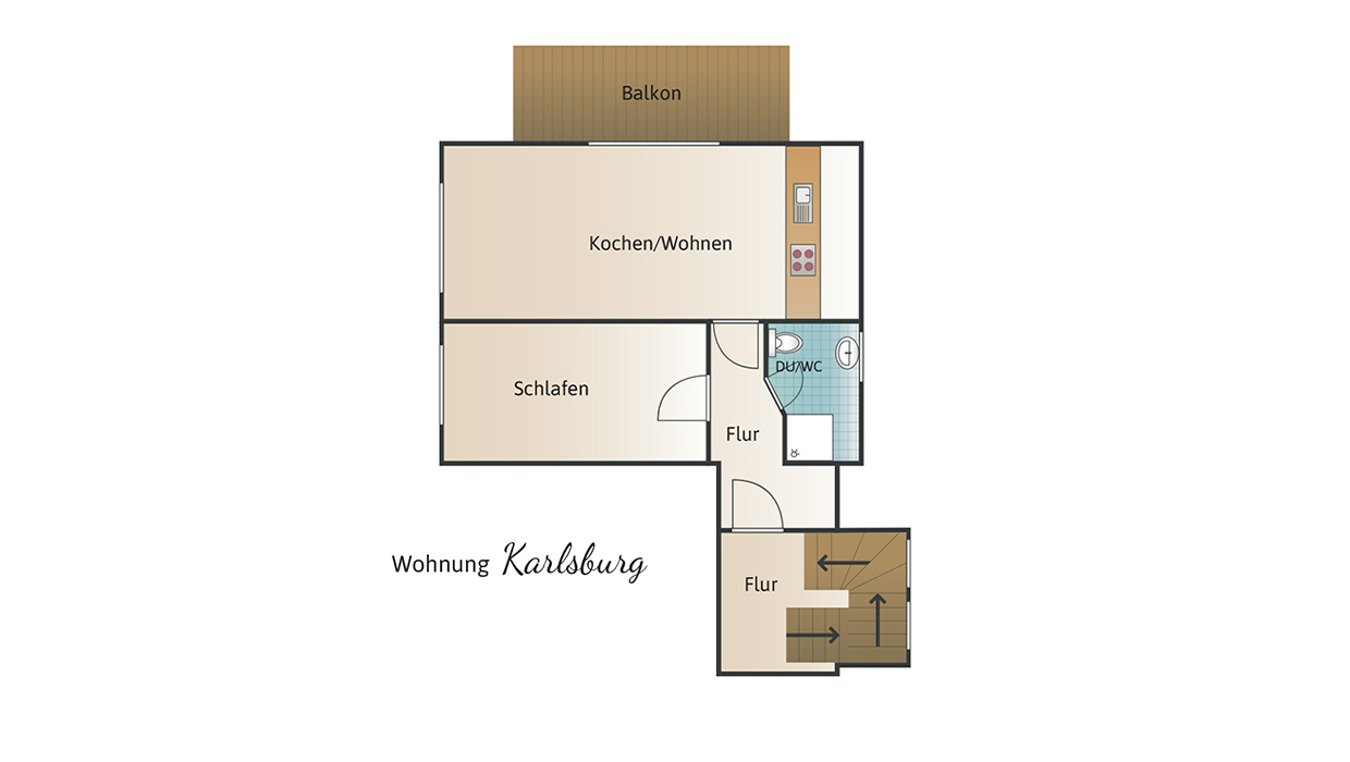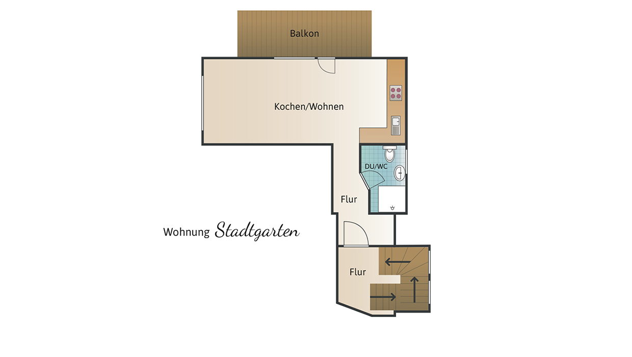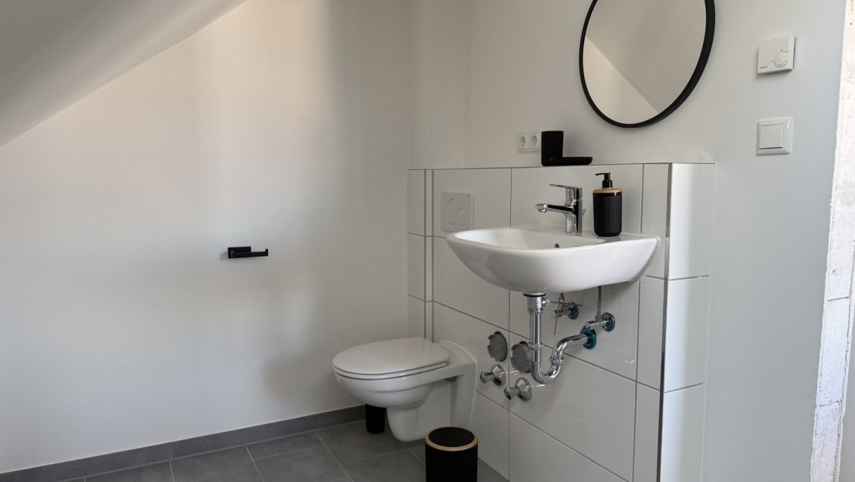 Die 40-qm-Ferienwohnung Schlossgarten im Erdgeschoss überzeugt durch einen hellen, modernen Zuschnitt und eine gemütliche Atmosphäre. Sie verfügt über ein separates Schlafzimmer mit komfortablem Boxspringbett und großzügigem Schrank. Der Wohnbereich kombiniert Küche, Essplatz und Sofa zu einem harmonischen Raum, der sowohl zum Entspannen als auch zum Kochen einlädt. Die Küche ist vollständig ausgestattet und ideal für längere Aufenthalte. Das Tageslichtbad bietet eine ebenerdige Dusche und hochwertige Ausstattung. Die angrenzende Terrasse erweitert den Wohnraum nach draußen und lädt zum Verweilen ein. Ein Fernseher sorgt für Unterhaltung. Die Wohnung eignet sich perfekt für 1–2 Personen, die Komfort und Ruhe schätzen.